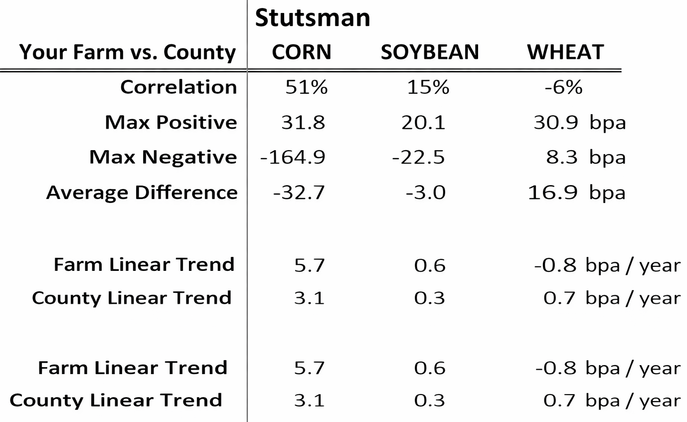 CODAK Insurance is recommending an analysis of your farm versus your county. An increased subsidy for ECO is great and absolutely an important consideration…but what if you don’t follow the county very well? We reviewed one client’s yield history** in Stutsman County for example: