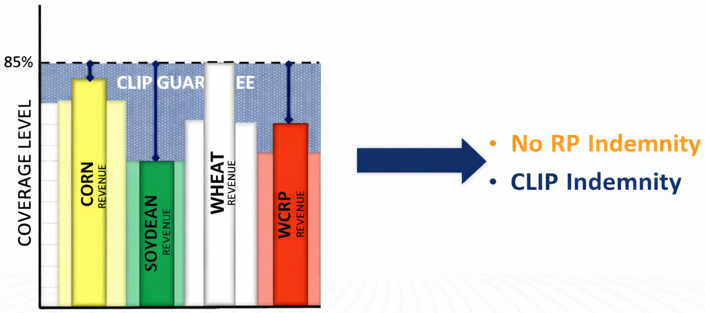 4. Partial CLIP Loss – a good year for some crops but average year for others results in a CLIP payment but no underlying RP claims